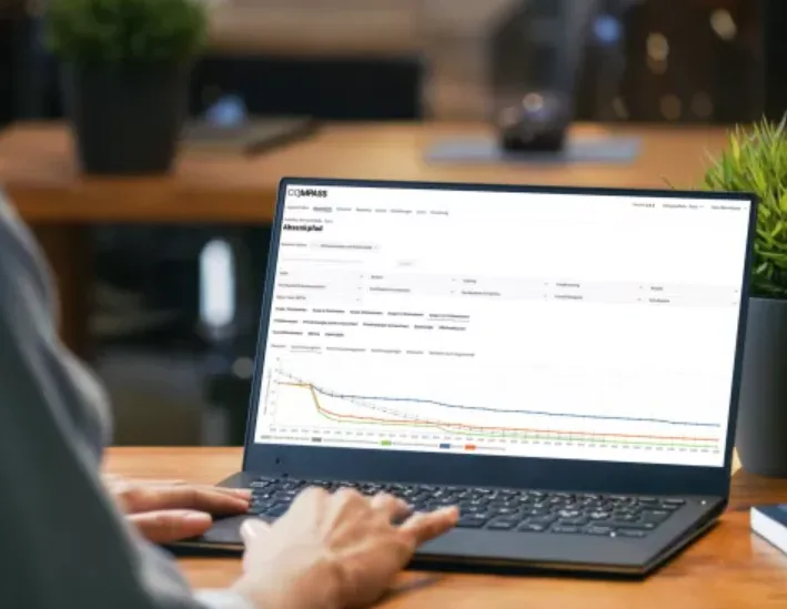 CO₂mpass: Mithilfe digitaler Tools wird der Absenkpfad der Emissionen visualisiert, um die Liegenschaft mit der Klimastrategie 2050 des Bundes in Einklang zu bringen.